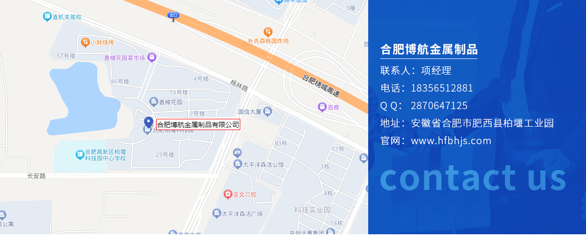 合肥博航金属制品有限公司是一家从事金属制品行业20余年,位于具有国际影响力的创新之都和现代化制造基地中国合肥。公司多年来本着诚信经营,顾客至上的原则,服务于国内各大中小企业,我们的专业化程度、技术服务水平、工程质量以及先进的服务理念得到了客...